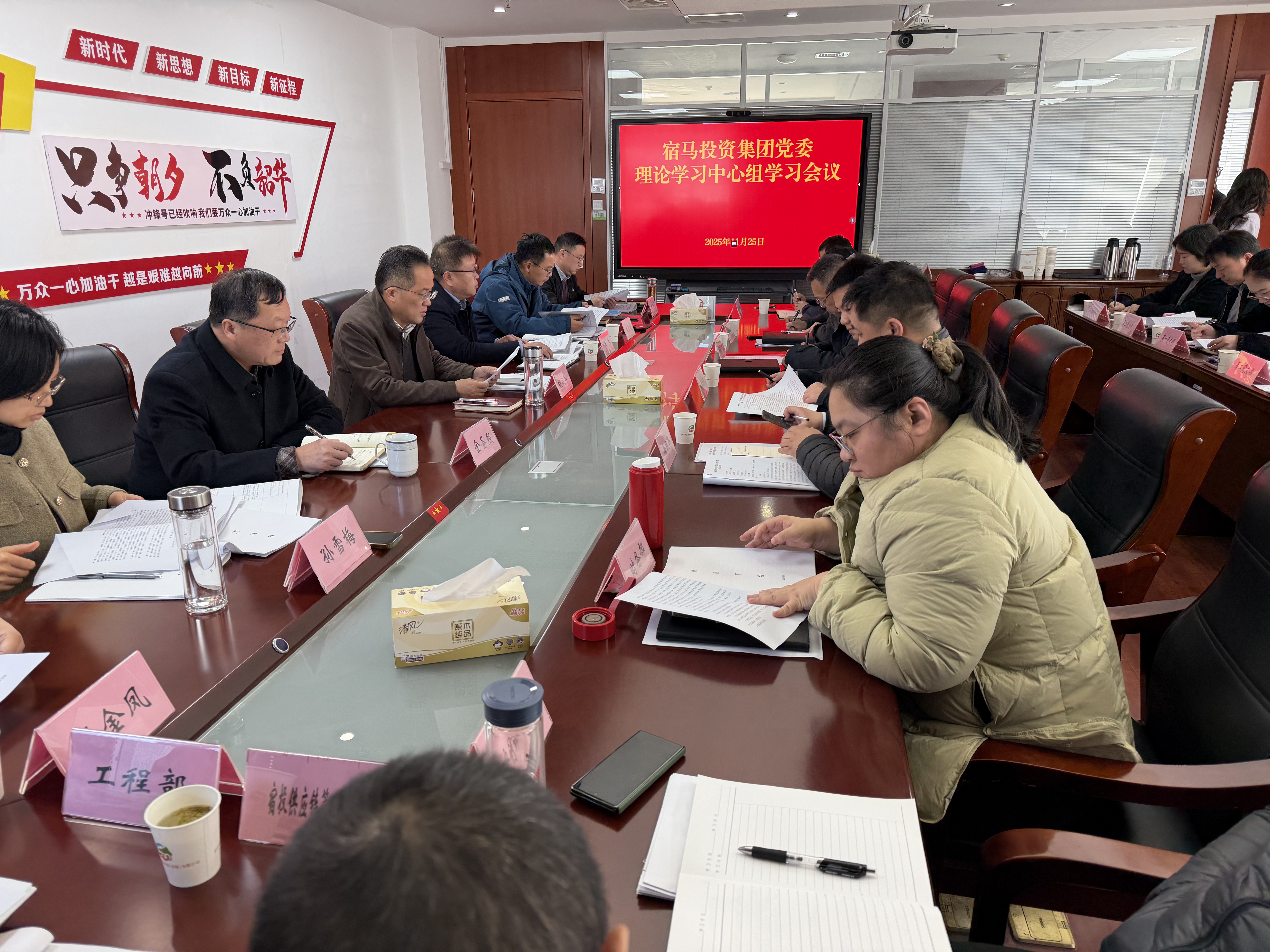 11月25日,bv伟德源自英国始于1946集团党委召开理论学习中心组学习(扩大)会议,深入学习党的二十届四中全会精神,集团党委书记胡成兵同志主持会议并发表讲话。集团班子成员、中层干部、六大板块负责人、各党支部书记参会,园区综合部领导列席旁听。
